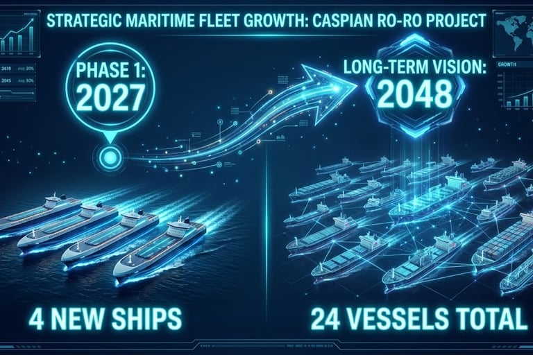 As part of the Caspian Ro-Ro Company (CRRC) initiative, 4 modern Ro-Ro vessels are planned to be commissioned in the first phase by 2027. In line with the project's long-term vision, the goal is to increase the total fleet capacity to 24 vessels by 2048.