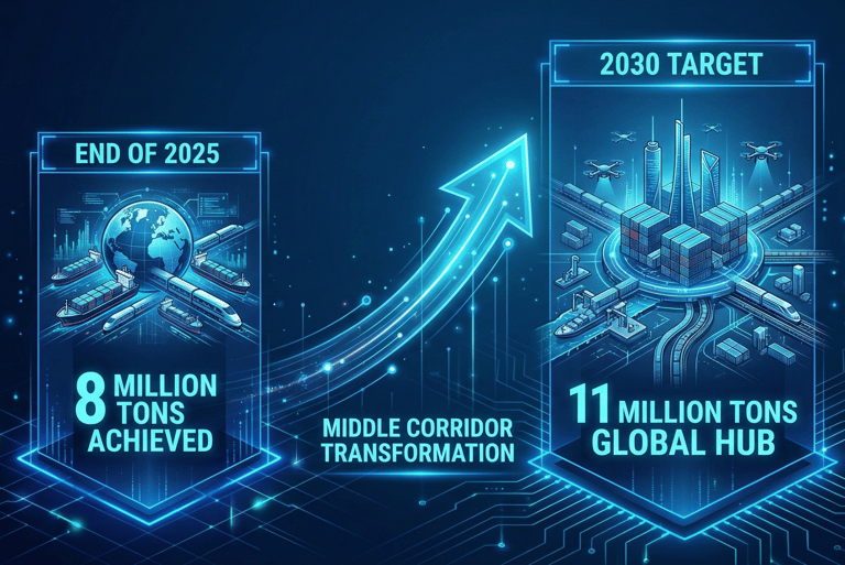 By the end of 2025, the total cargo volume transported via the Middle Corridor reached 8 million tons. The 2030 target is to increase this volume to 11 million tons, transforming the region into a global logistics hub.