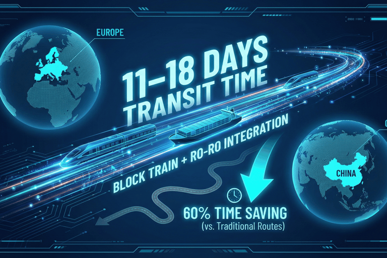 Thanks to the integration of "Block Trains" and Ro-Ro on the China-Europe route, transit times have been reduced to 11-18 days, providing a 60% time saving compared to traditional sea routes.